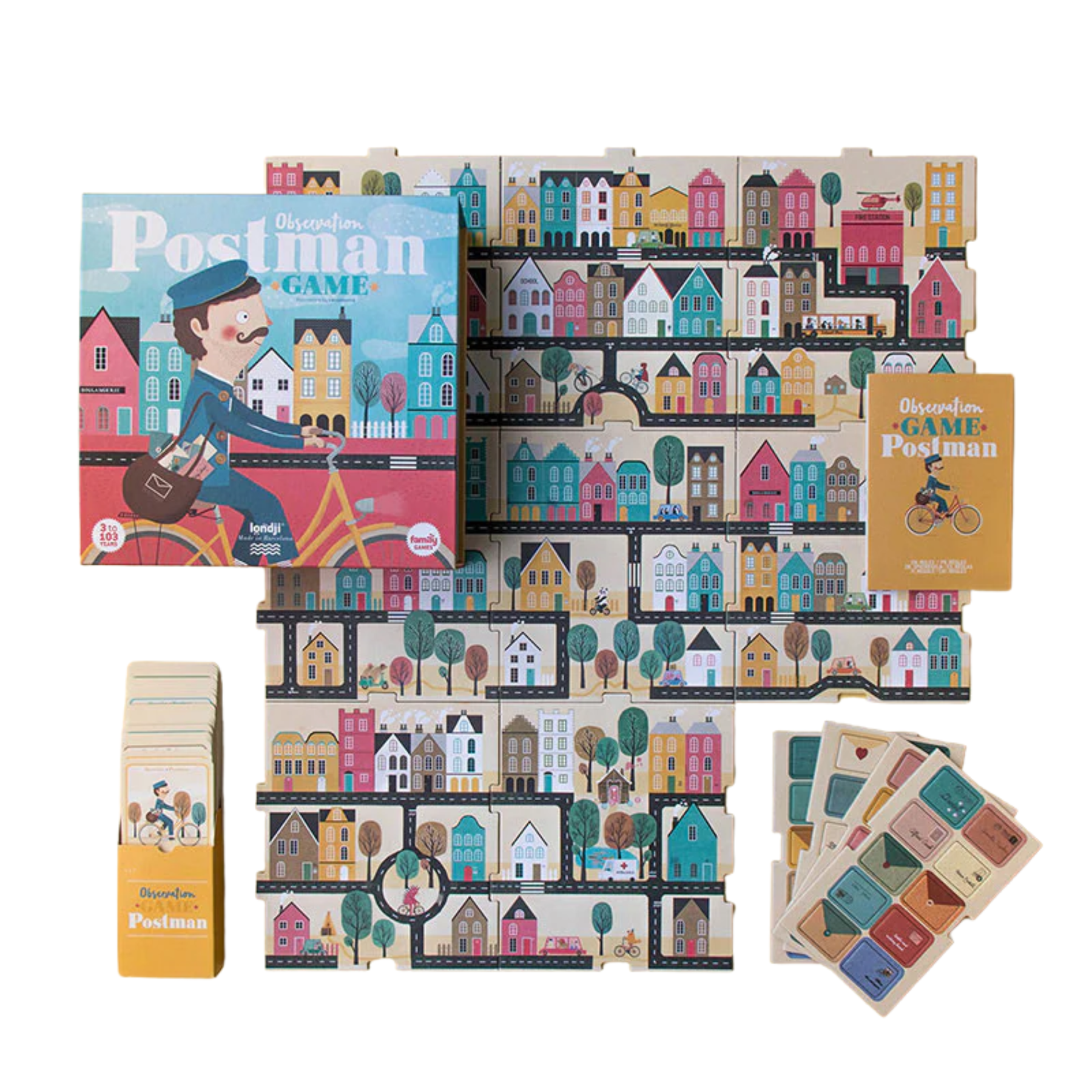 Londji's Postman has a lot of work handing out all the letters. The quickest player in finding the neighbors to whom belong the letters, will be the winner! An observation game for the whole family.