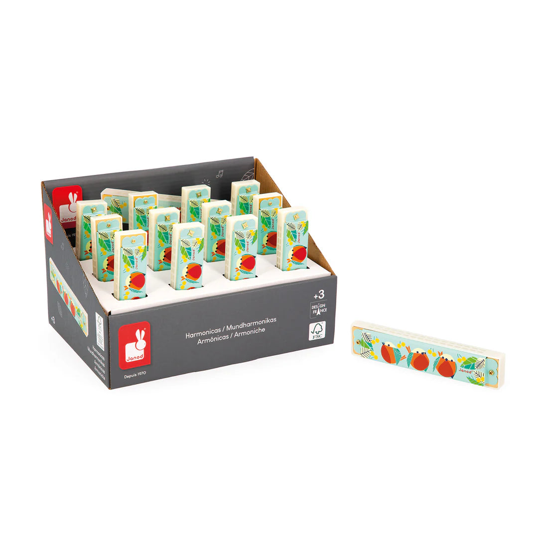 Let the music begin! Your child will be delighted to discover this beautiful metal harmonica. He'll be able to discover the joys of musical improvisation, while awakening his senses. Sold in a display of 12 pieces. Musical imitation toy, from age 3.