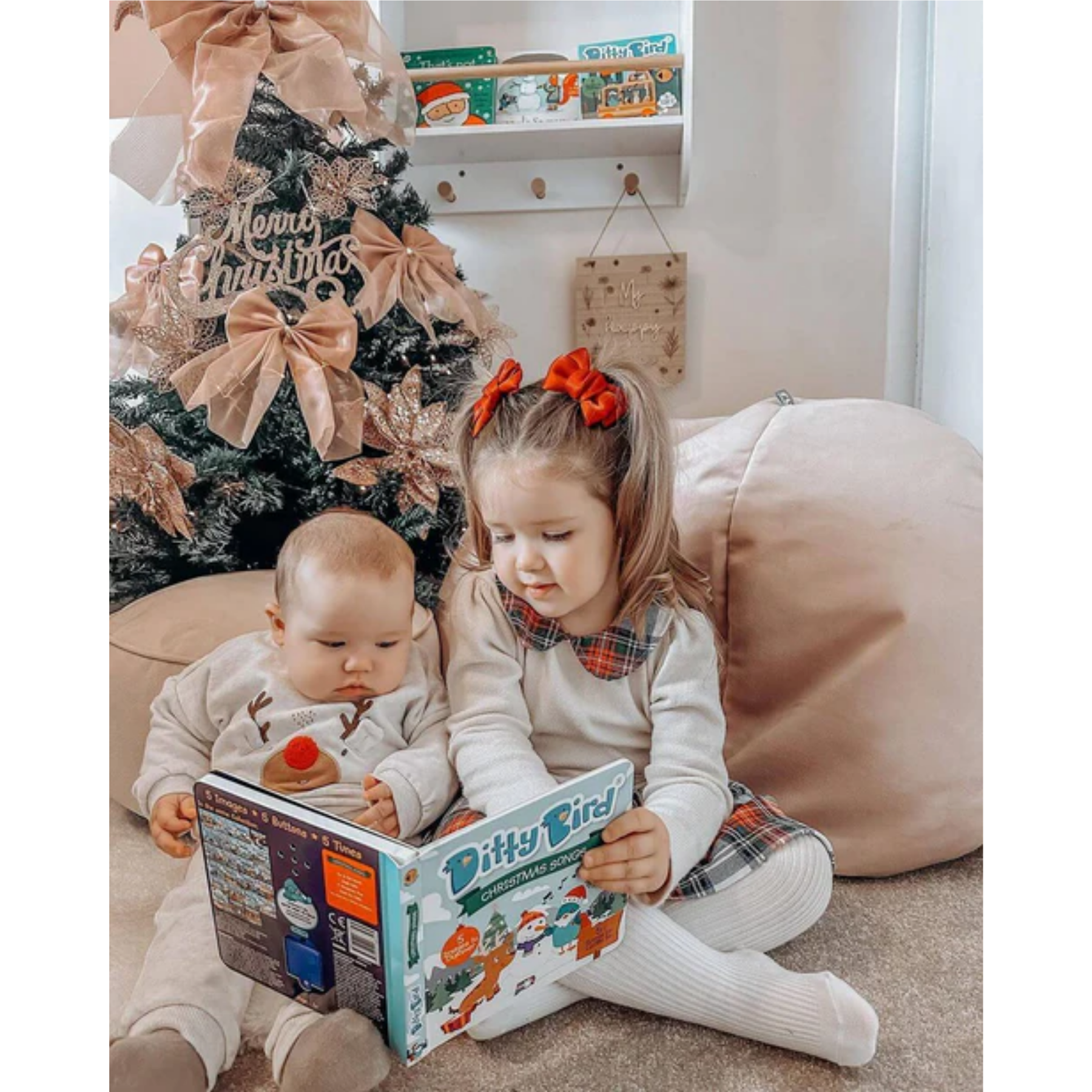 There’s nothing like music to get you in the holiday mood, so why not invite your toddler into the musical magic of Christmas. Each page spread of a Ditty Bird book has one ‘sound dot’ that when touched triggers on/off the songs.