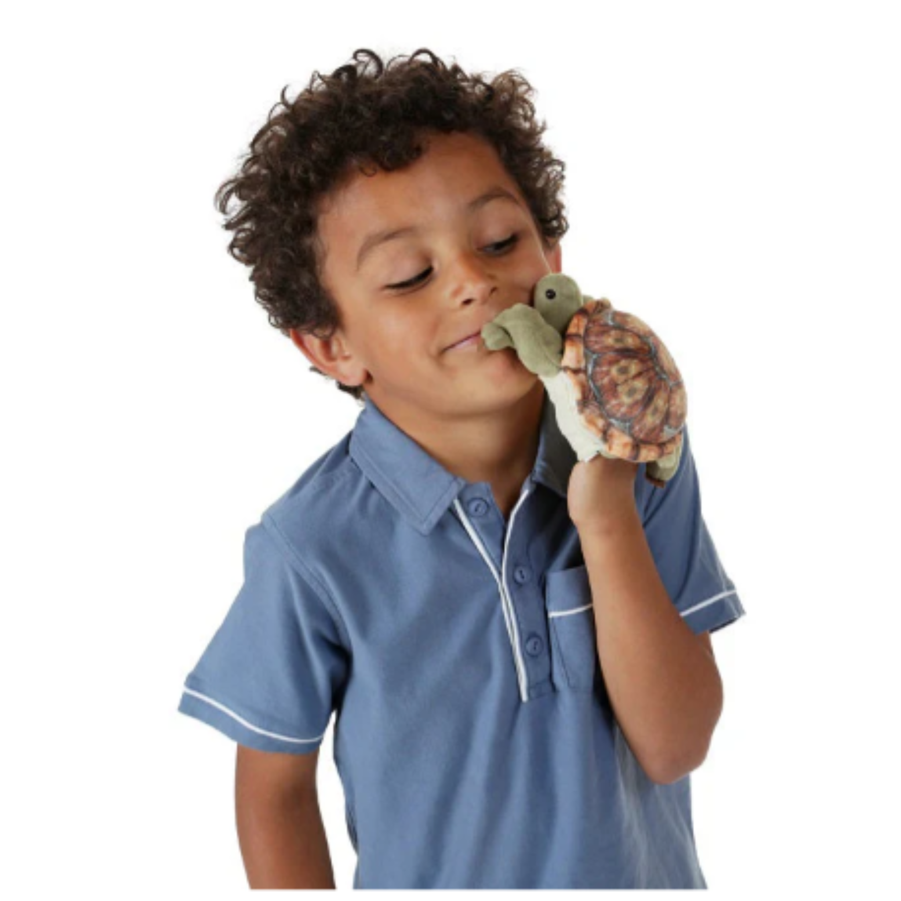 Take peek-a-boo fun on the go with the engaging Folkmanis® Mini Tortoise finger puppet that tucks into its shell.