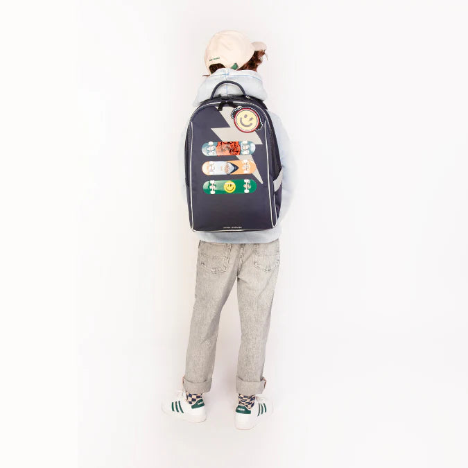 Mothers and youngsters swear by our James backpack. Its shape makes it super original and attractive, but the real wow effect is gained when you open the bag : a harmonica system unfolds to classify and organize all your school supplies.