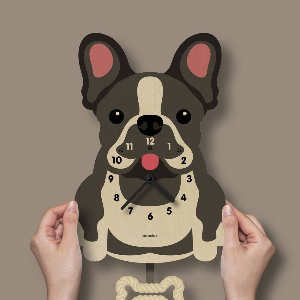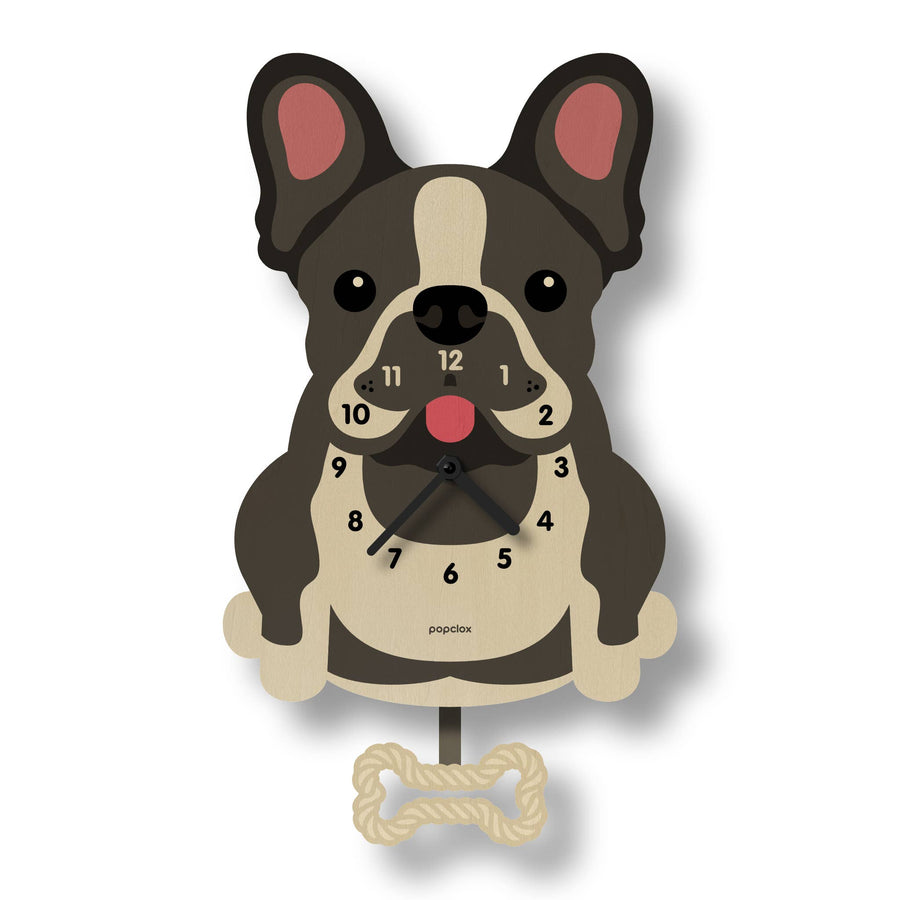 Expertly crafted with a whimsical design, this wooden pendulum wall clock features a swinging bone chew toy pendulum for the ultimate french bulldog lover. Keep time in style while showcasing your love for these playful puppies. A must-have for any dog enthusiast.