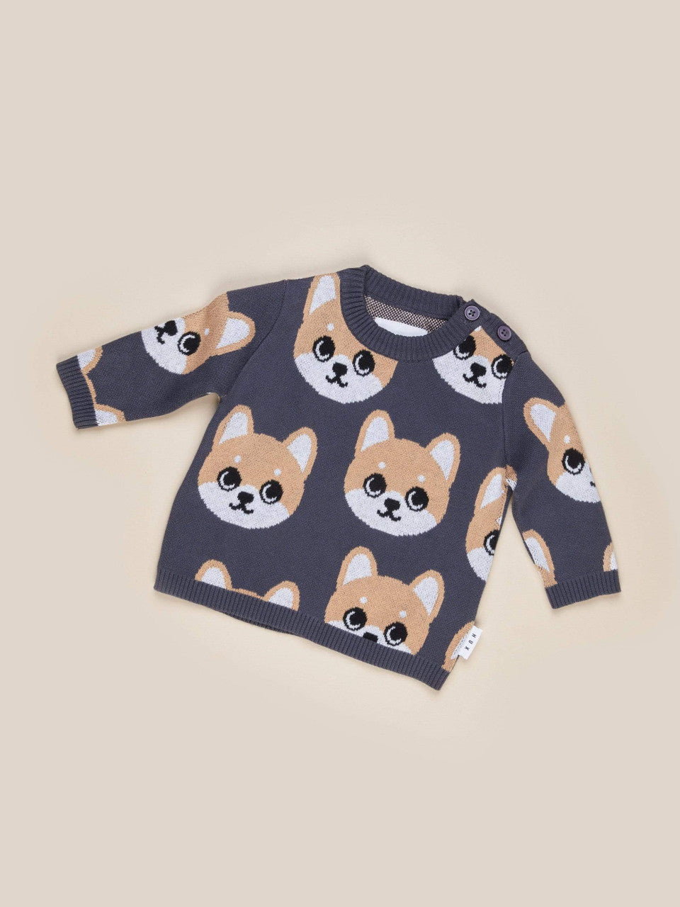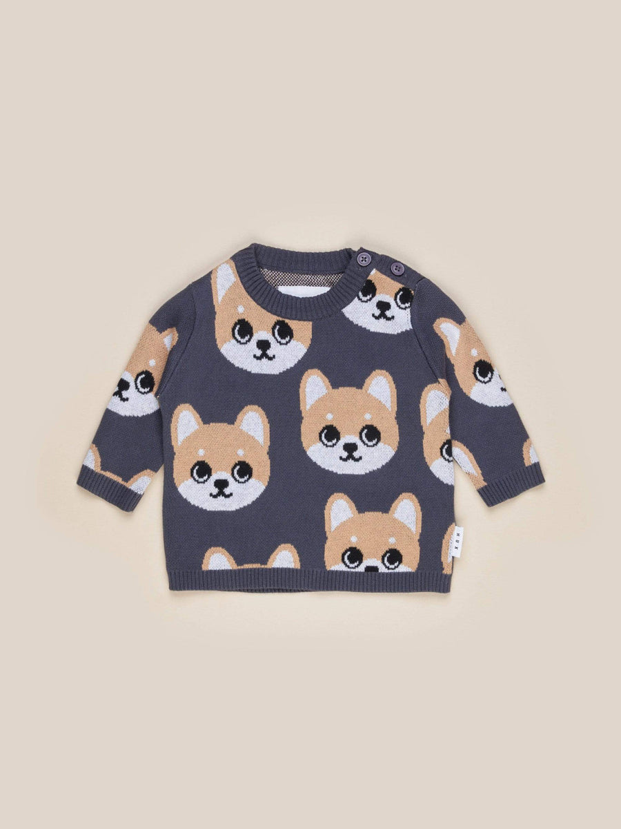 Have a 'pawsome' time in this super-luxe, premium organic jacquard knit jumper with an all over shiba pattern.