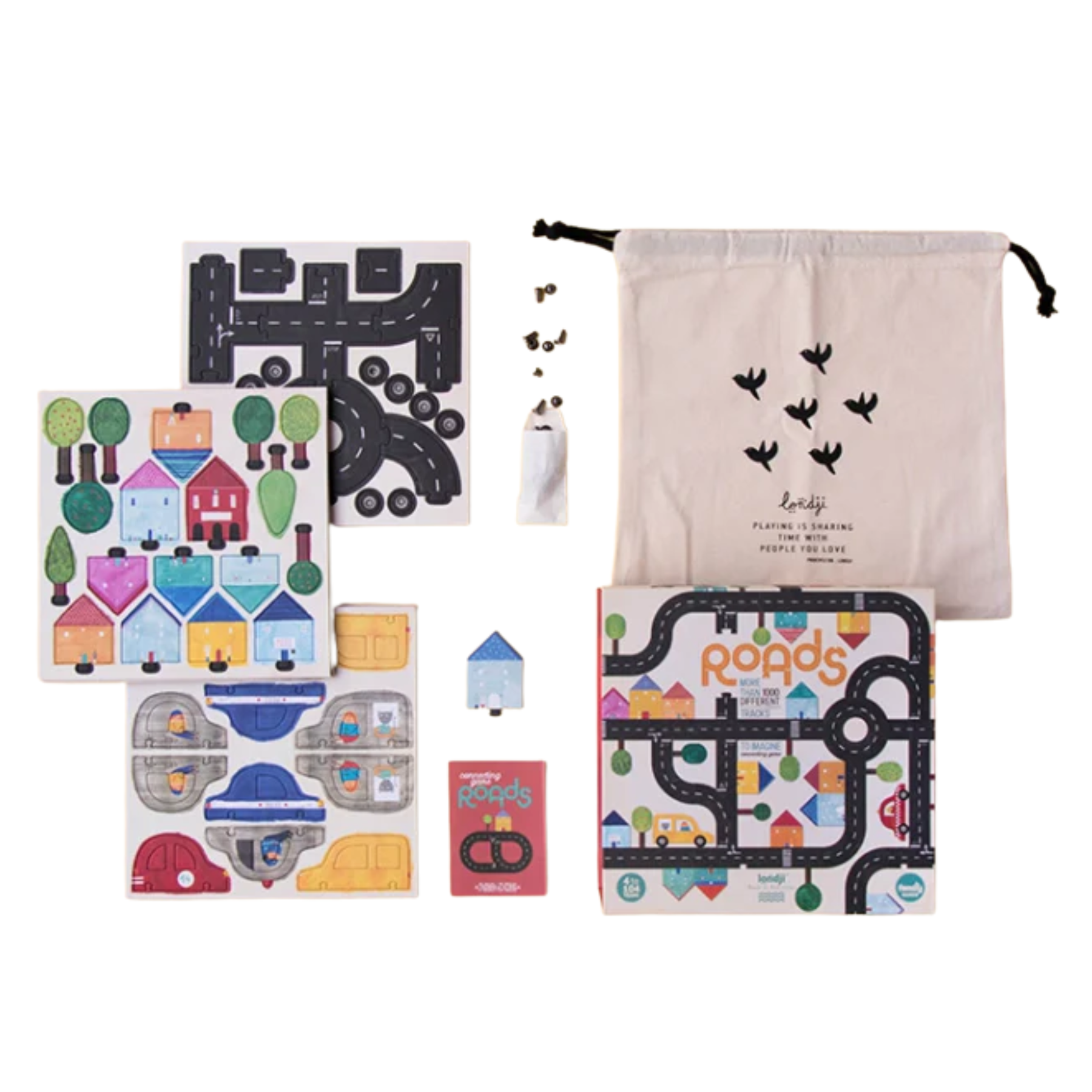 Roads game Made in Barcelona by Londji : Imagine the longest road in the world. Do you dare to build it? To overcome the challenge you will have to use all the pieces! First you build it and then you can use it to play with cars!