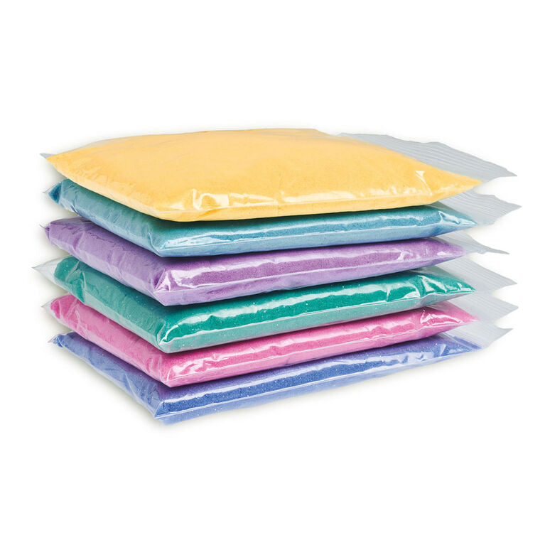 The bags of sand are resealable, and the set comes with a play tray for mess free fun! Best of all, the sand never dries out so you can play again and again!