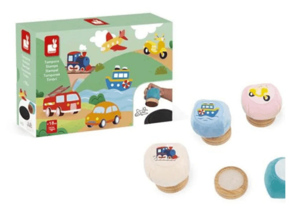 All on the way! Let's go on an imaginary journey with these pretty vehicle fabric stamps. Once at its destination, the stamp turns into a small plush thanks to a scratch system allowing the upper part to be removed. The textile part is hand washable in water at 30°C. Also to be discovered inside is a black inkwell and a notepad ready to be decorated. Ideal for developing fine motor skills and imagination. Creative hobbies for children from 18 months.