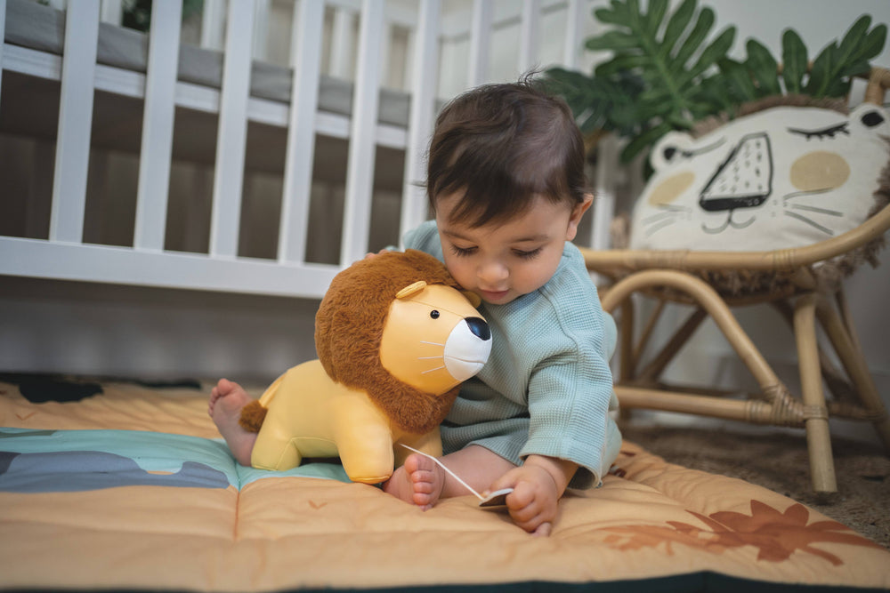Jackson the Lion is a sweet music box that will soon find its place in your nursery. Jackson is pleasant to handle thanks to its soft texture and its pretty rounded forms. Jackson the Lion plays "Beethoven’sMoonlight Sonata" for baby. An ideal gift for newborns through toddlers, perfect for Christmas, Birthdays, Seasonal Occasions, or simply just because!! Key Features: • Perfect for newborns • Soft texture • Rounded shapes • Plays "Beethoven’s Moonlight Sonata" • Great as a nursery decor item
