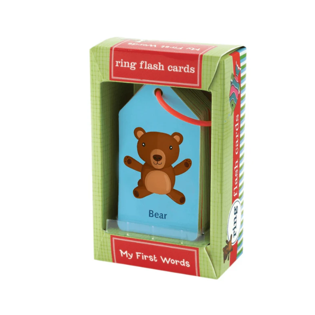 Get started with language with Mudpuppy's My First Words ring flash cards. Illustrations by Ivanke & Lola. Use as flash cards, practice sorting by color or type, or separate and hang as decorations in a playroom or classroom.