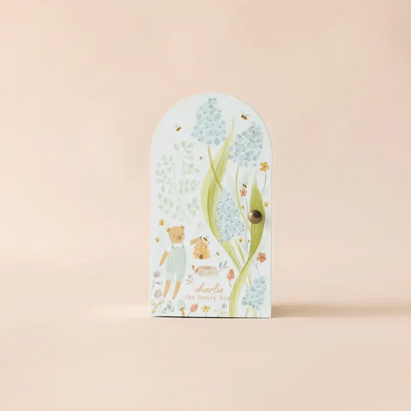 Each Tiny doll comes nestled in a Tiny home, with breathtakingly hand painted watercolour wildflowers and an antiqued bronze door knob that opens to a magical night scene full of twinkling copper foil stars. Collect all 12 to create a beautiful enchanted meadow!