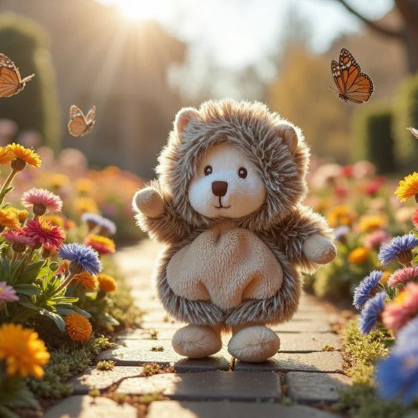 Ziggy Hedgehog is a charming and whimsical character ready to roll into your heart with his delightful design and playful spirit. Ziggy Hedgehog is dressed in an ultra-soft, hedgehog-inspired hoodie that transforms this cuddly bear into a lovable forest friend. He is the perfect companion for those who adore the magic of woodland creatures and the joy of imaginative play.