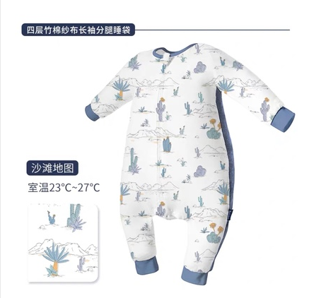 Long sleeve double layer gauze sleep suit with ribbed side-Desert Adventure