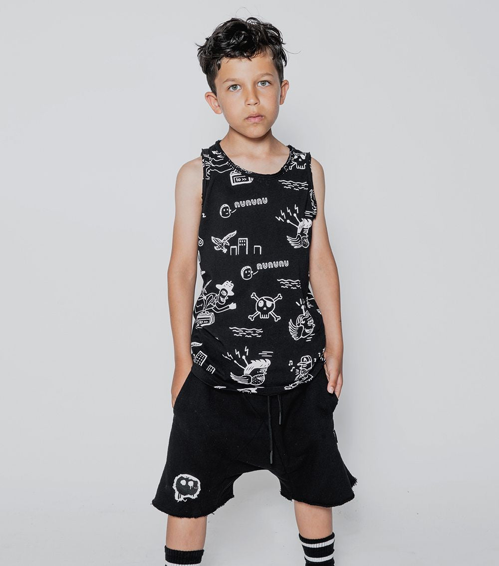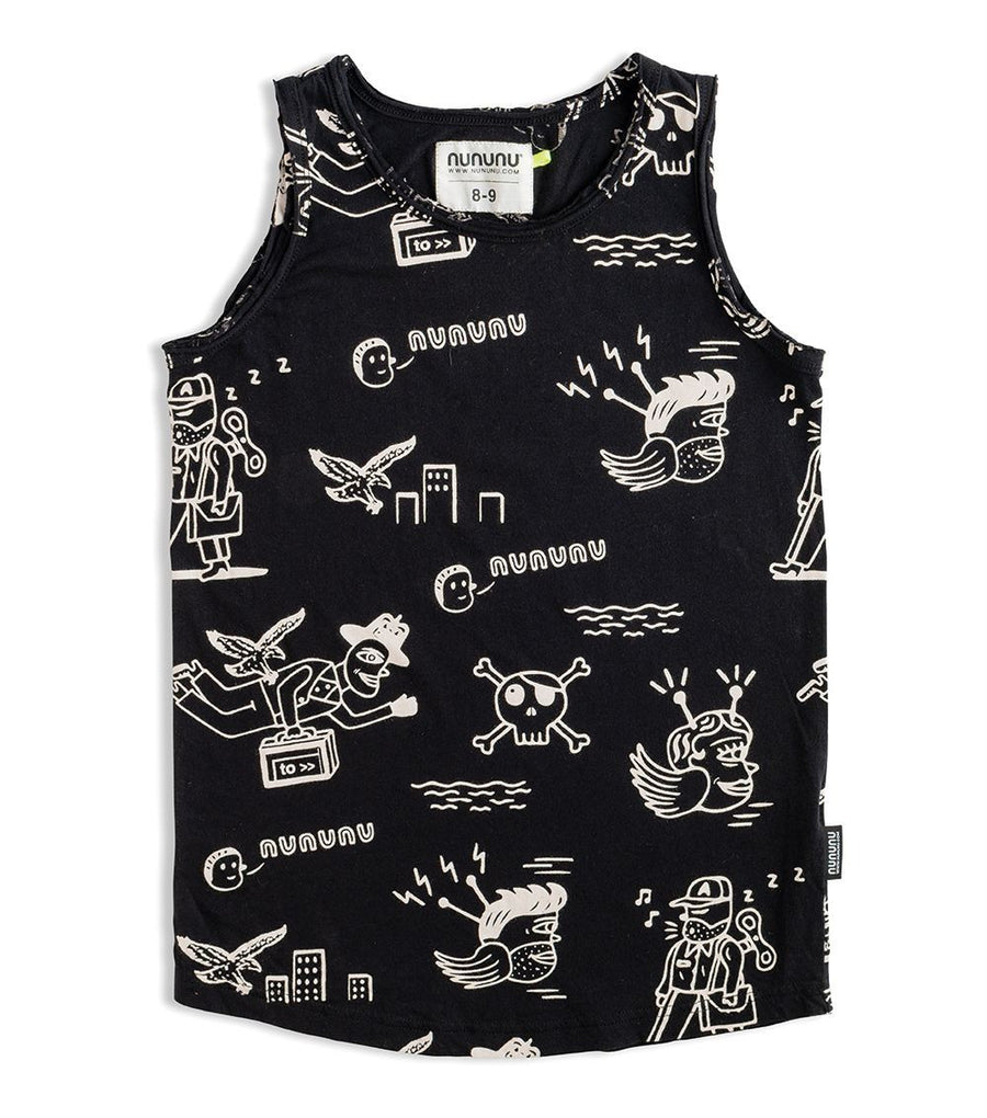 this dope black unisex tank top really elevates the artist’s work. that would be our favorite illustrator craig hopson (aka “craigio”). here, we’ve taken some doodles craig drew years ago on an airmail envelope (remember those?) and put them all over. the feel is classic nununu, totally soft with a relaxed cut & split-seam edges. a summer staple if we ever saw one, wear it with shorts, jeans & over swimsuits. anytime, every day.