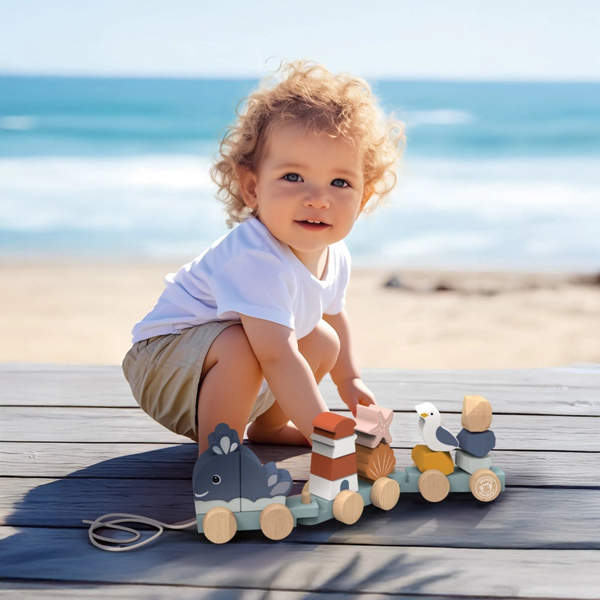 All aboard for an adventure under the sea! The Ocean Stacking Train brings together the magic of marine life and the fun of stacking and building. With 15 colorful wooden blocks in ocean-inspired shapes and patterns, this toy is perfect for stimulating your toddler’s imagination and creativity.