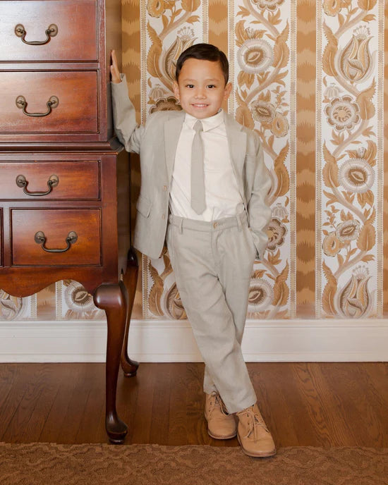Complete the look with our short sleeve Atlas button-down shirt in linen. Our soft linen-cotton blend adds a comfortable yet tailored look. Wear it as a separate or suit up with our coordinating boyswear collection.