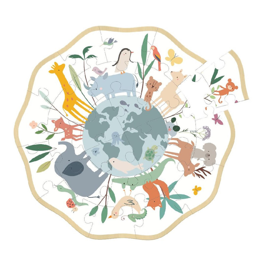 Welcome into the wonderful and poetic world of Sarah Betz. This 24pcs wooden round puzzle representing animals around our beautiful planet will help your child to develop observation, concentration and fine motor skills while having fun. Made of wood, its durability will be greater than cardboard puzzles and will be passed down from generation to generation.
