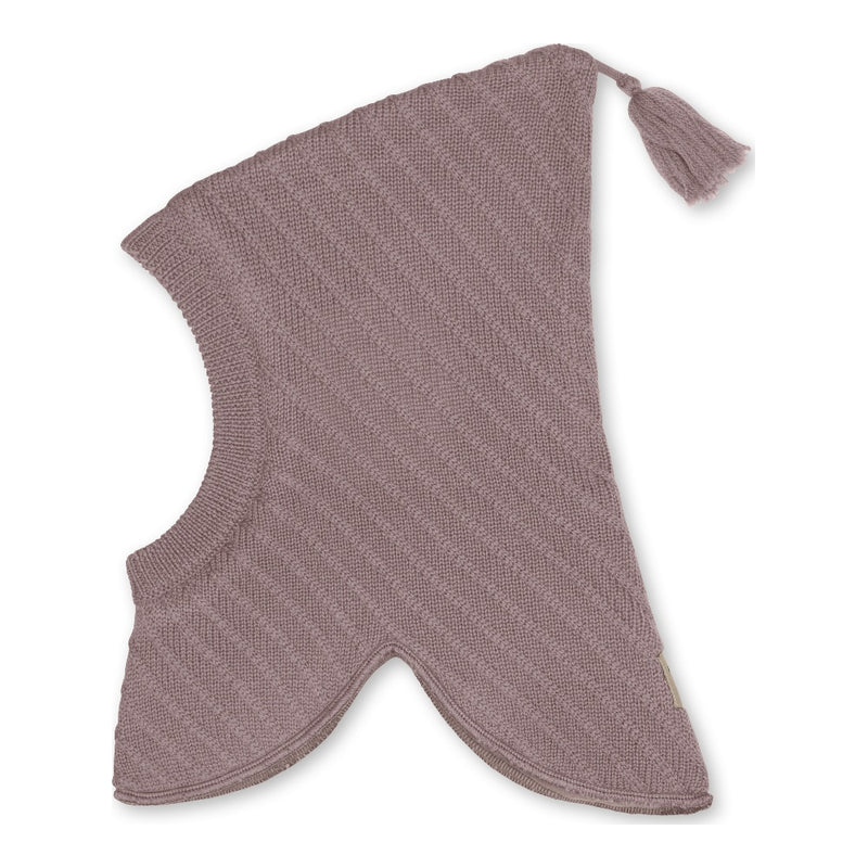 Elephant hood balaclava from MINI A TURE knitted in Italian merino wool. The hood has a tassel at the top, comes with a soft fleece lining and has a MINI A TURE logo at the back seamline.