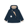 Iconic MINI A TURE winter jacket with 10-year guarantee. Wind- and waterproof, breathable, tested to keep warm down to -25 degrees Celsius. The jacket opens at the front by a hidden, slanted zipper and has a soft fleece lining. The hood is detachable and can be adjusted with an elastic string to keep the wind out. The sleeves have improved fitting securing the freedom to move as well as snow cuffs at the wrists with thumb opening. The waist is adjustable from the inside with an elastic. Sizes up to and including 86cm/18m have a rib around the neck, while the larger sizes have a regular collar.
