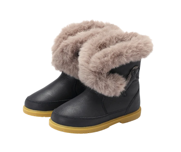 Furry and sweet! Walk into the world of wonders with these adorable Tusi boots! Thanks to a lovely skunk design, this pair will instantly become your little one's first choice. Crafted with 100% premium cow leather and soft sheep wool to keep those sweet toes warm and comfortable.