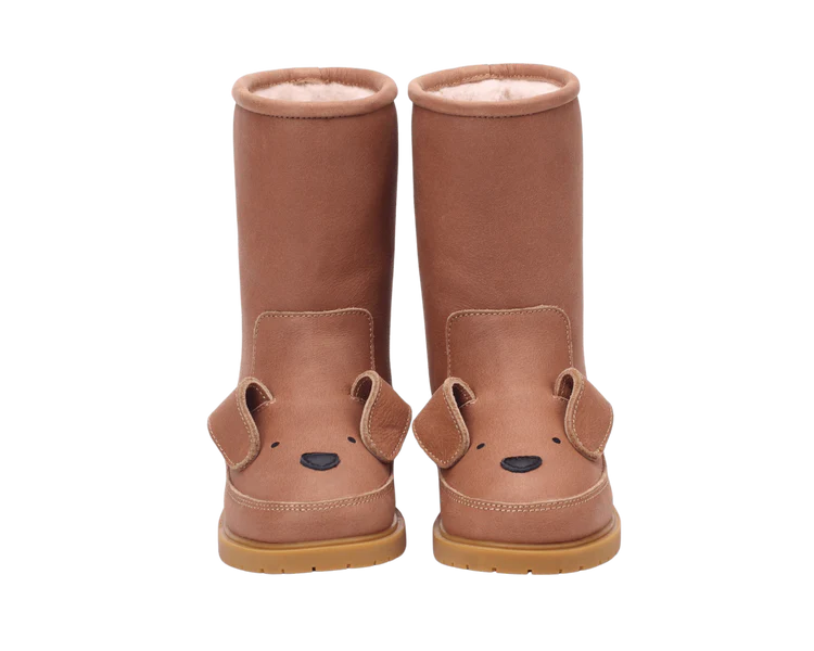 Paws and tales! Your little one's new friend! Our classic Wadudu boots will become your kid's absolute favourite. A Donsje signature design makes this pair instantly recognisable thanks to intricate leather details and the dog snout. Made with premium leather and sheep wool, these boots are comfortable and effortlessly easy for those tiny fingers to put on and off.