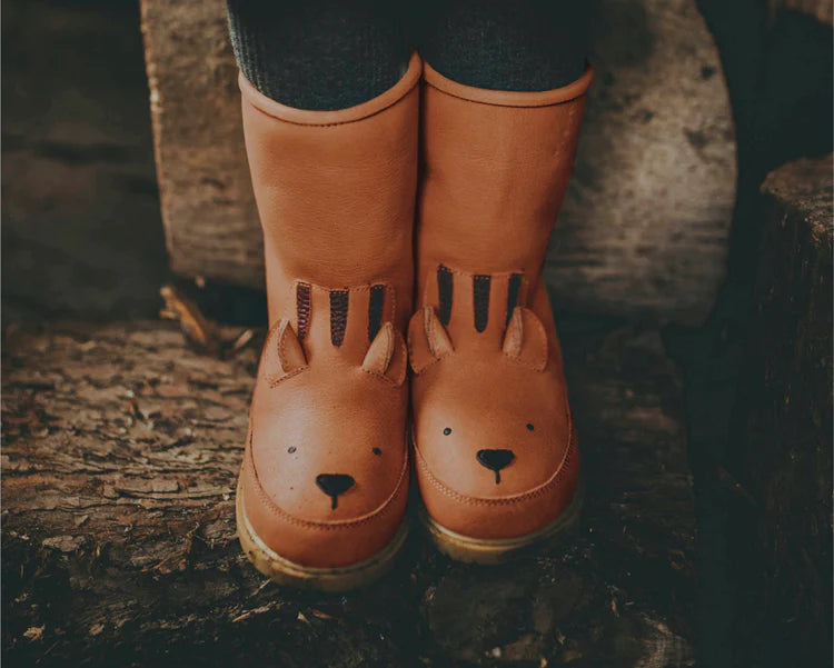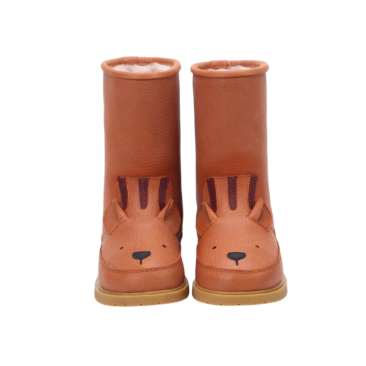 Go, get 'em, Tiger! Our classic Wadudu boots will take your kid anywhere! A Donsje signature design makes this pair instantly recognisable thanks to intricate leather details and the tiger snout. Made with premium leather and sheep wool, these boots are comfortable and effortlessly easy for those tiny fingers to put on and off.