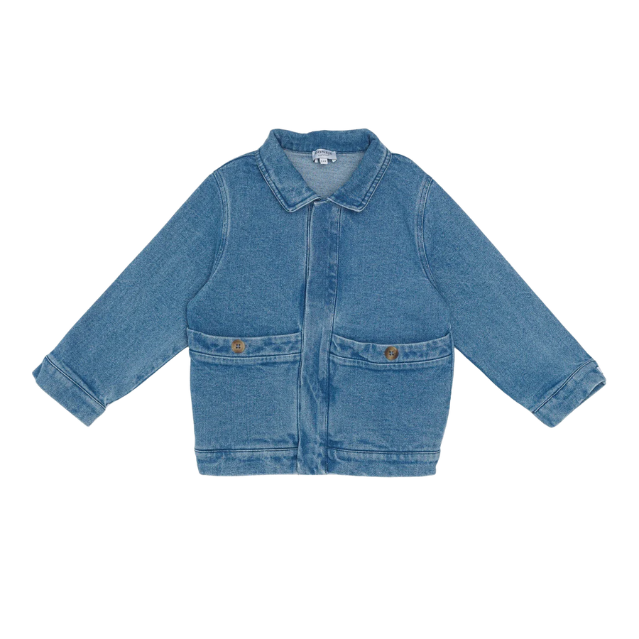 Cosy and chique! The Cities Jacket is the perfect outer layer for chilly summer evenings and first crispy days. Made from cotton, the jacket comes in a timeless denim blue hue and has two front pockets for all their little treasures.