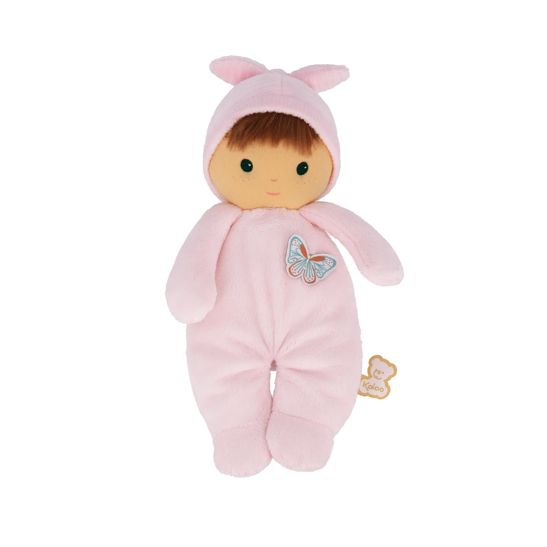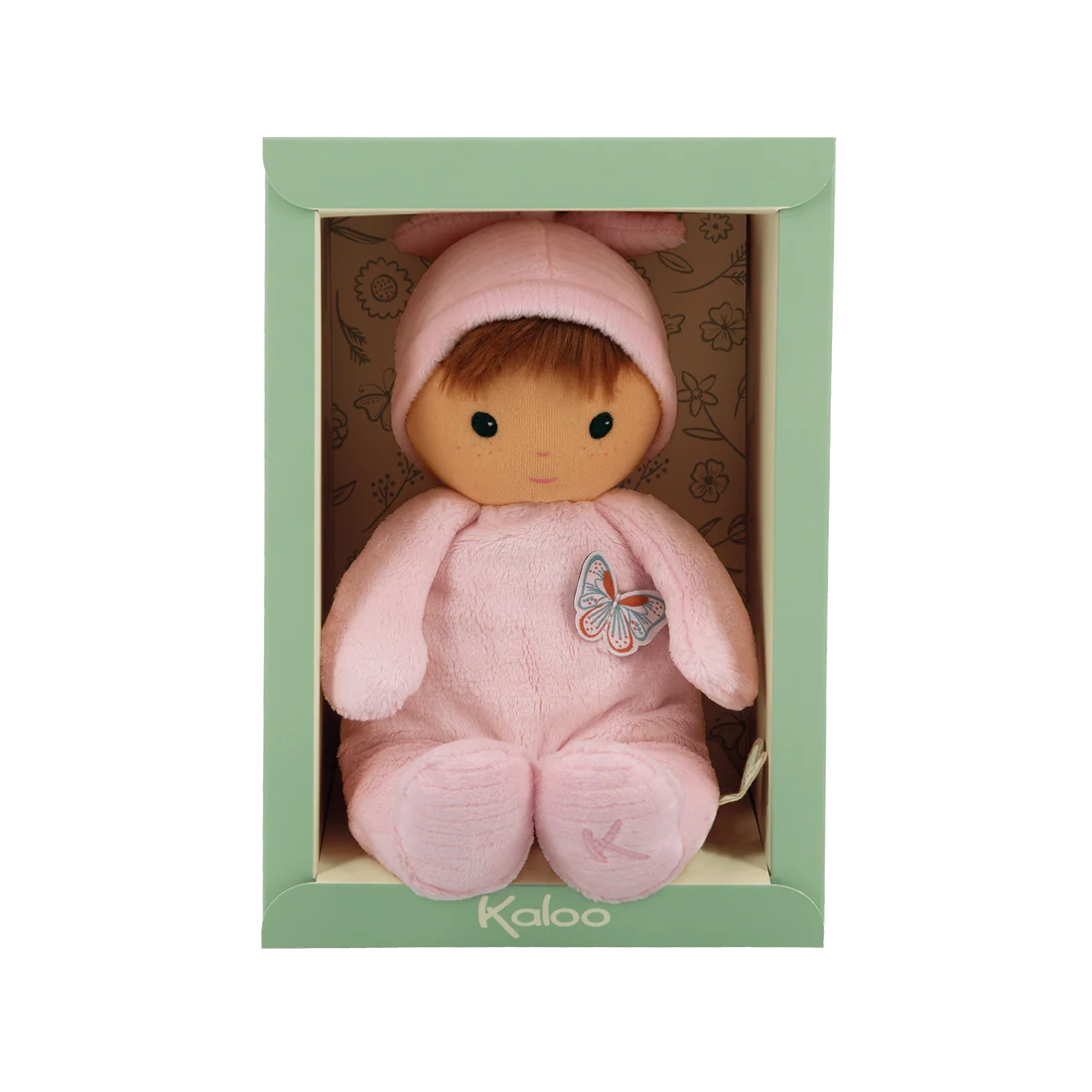 The Kaloo Baby Camélia fabric doll, measuring 24 cm, is crafted from high-quality materials including ultra-soft micro-velvet, corduroy, and recycled polyester filling. Its delicate design, inspired by the camellia flower, combines softness with elegance. The product meets European safety and quality standards, ensuring a safe and durable toy.