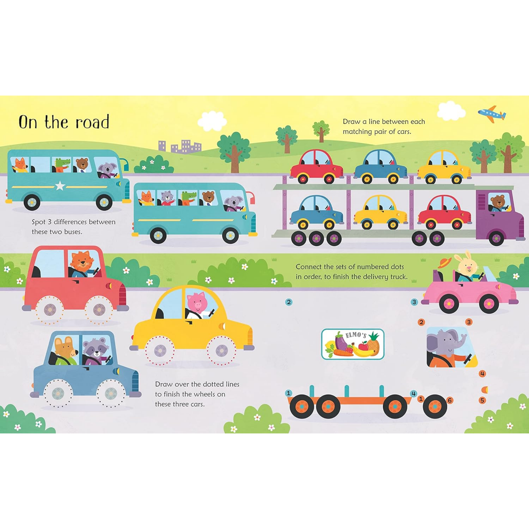Join the animal friends as they encounter all kinds of exciting vehicles. Use the special pen provided to solve mazes, trace the dotted lines, finish dot-to-dot pictures and spot differences, then wipe the pages clean and do them all again. This fun book is a perfect way for young children to develop vital counting, observation and pen control skills.